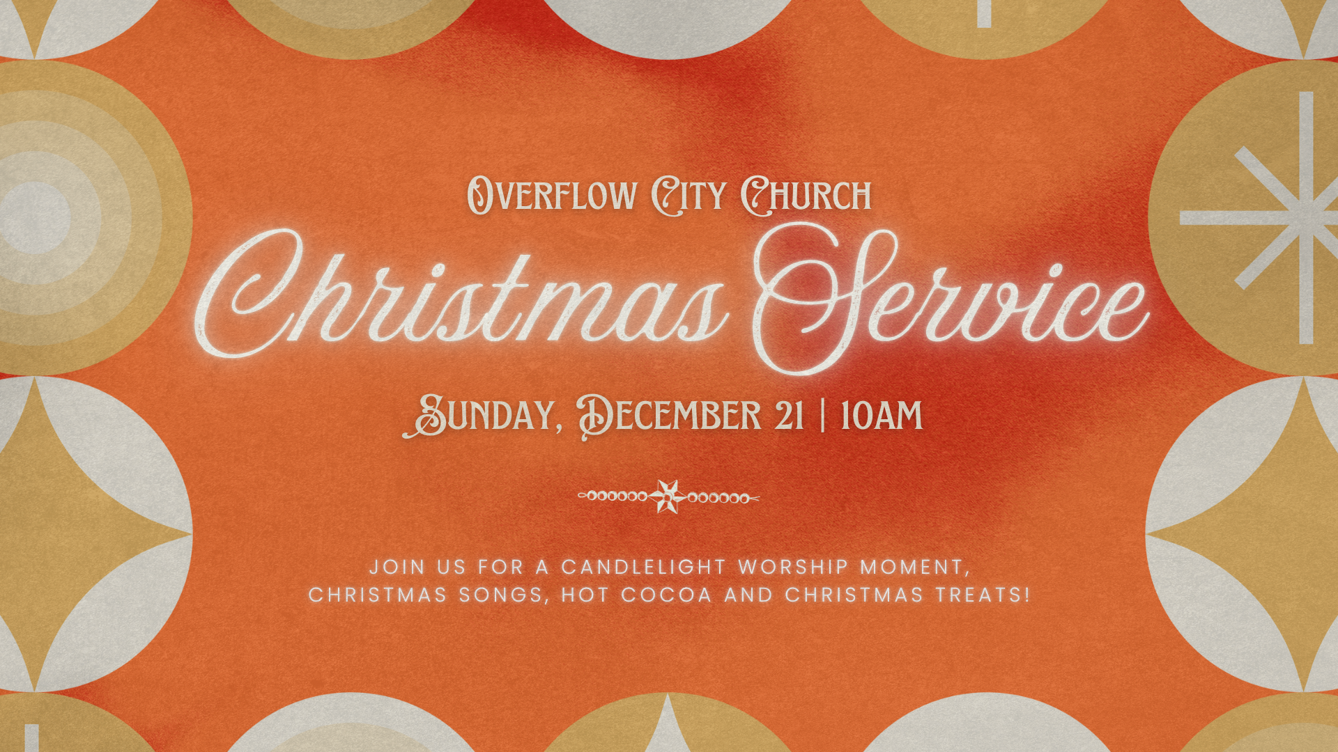 Join us for a special Christmas service on Sunday, December 21 at 10am as we celebrate the joyous birth of Jesus! Get ready to experience dynamic worship, an inspiring message, and a service that captures the true meaning of Christmas. We’ll also be having a candlelight worship moment with Christmas songs, along with hot cocoa and Christmas treats to enjoy. Bring your family, invite your friends, and enjoy this special season with us.