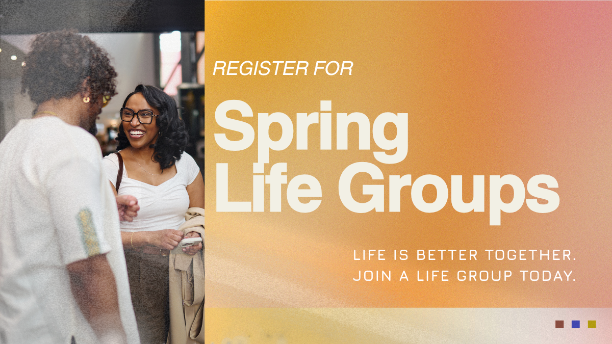 Join us as we go over last Sunday's sermon! Spring Life groups start the week of April 27 and meet weekly on either Tuesdays or Wednesdays until the week of July 13. We look forward to hearing how the message impacted you, and are excited to dive into a deeper time of discussion and reflection on the practical ways we can live out the truths learned each week!